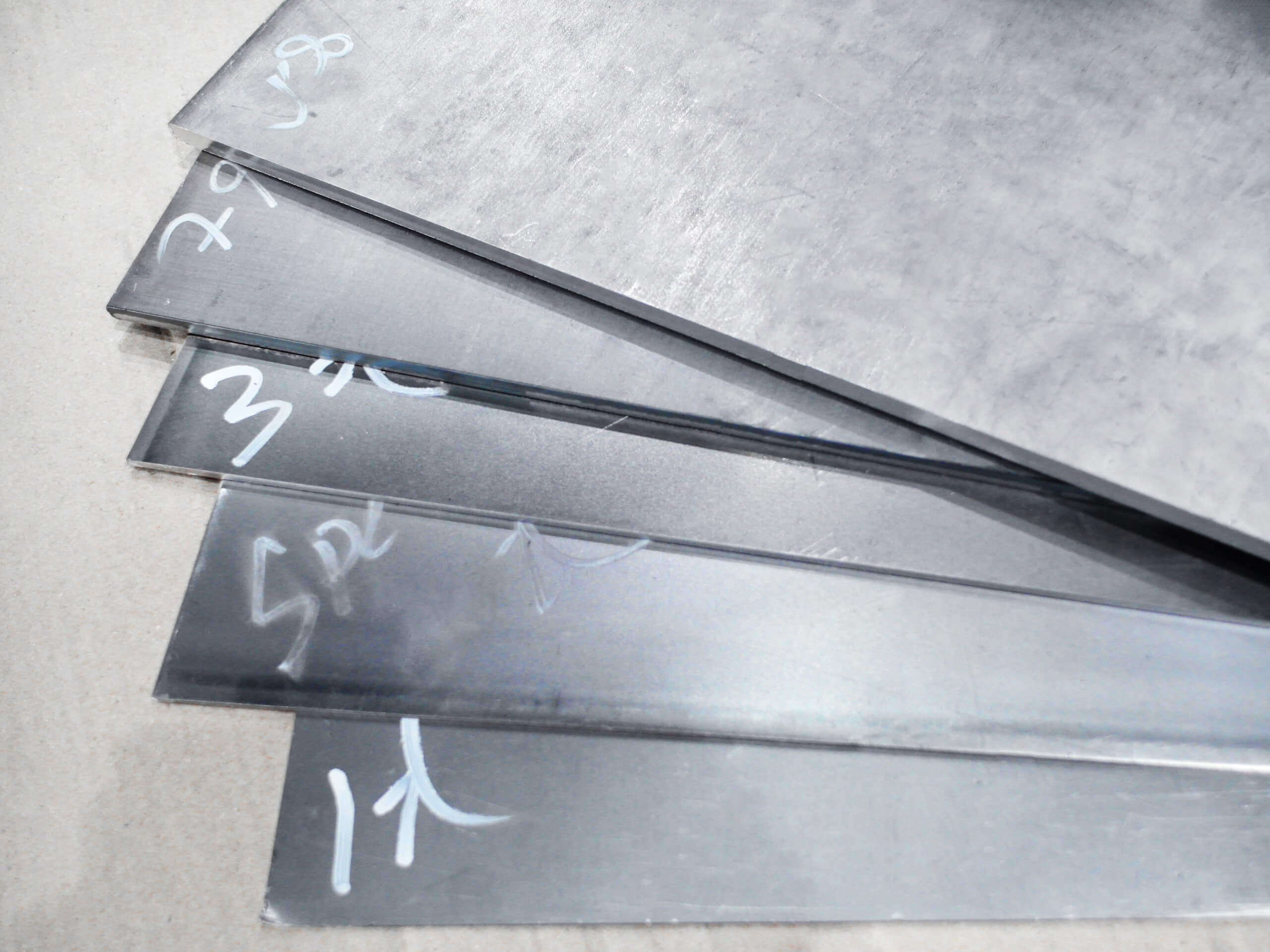 BLIKSEN commonly works with materials like carbon steel, stainless steel, and aluminum alloys, with sheet thicknesses ranging from 0.5mm to 20mm. The image shows typical sheet metal stock of various thicknesses.